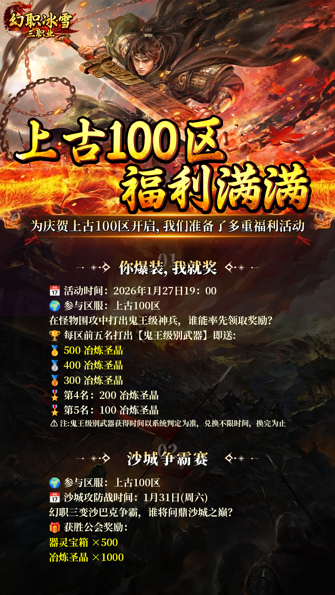 《冰雪传奇幻变三职业》1月27日上古100区开区活动公告